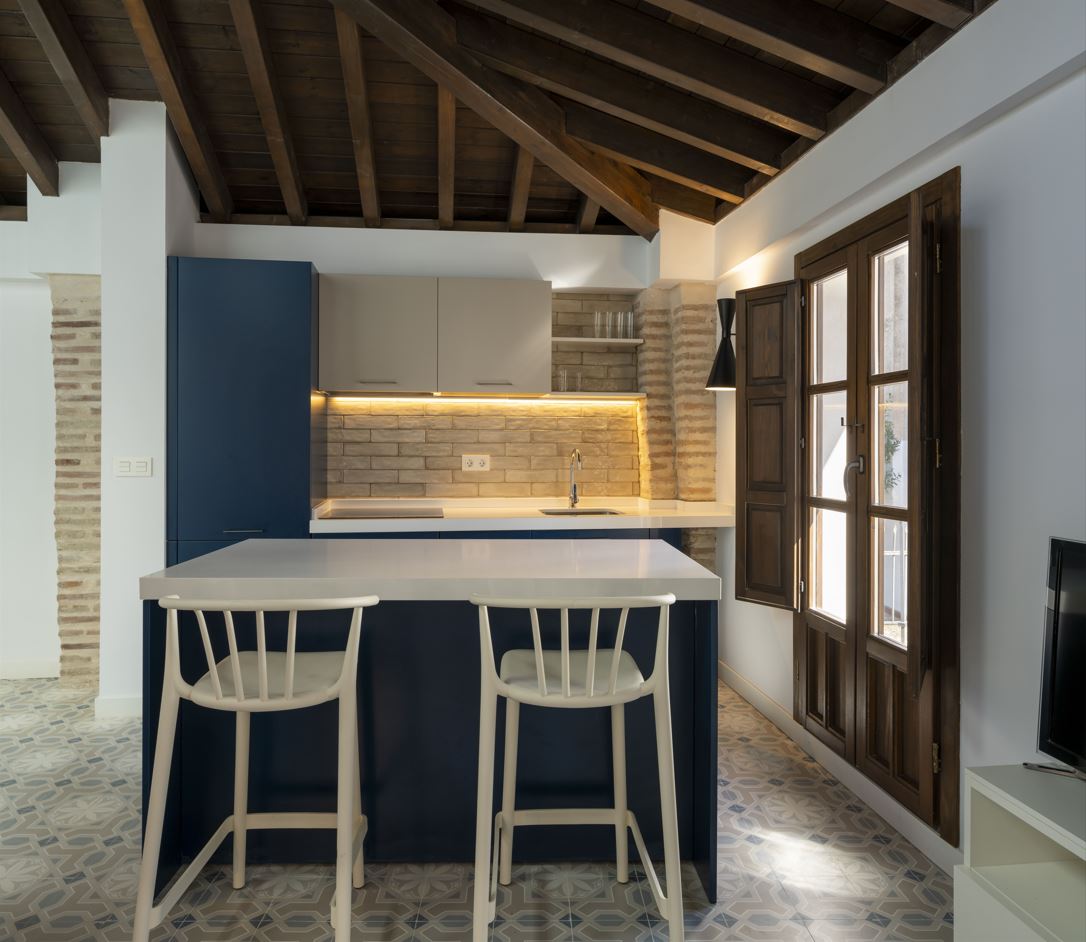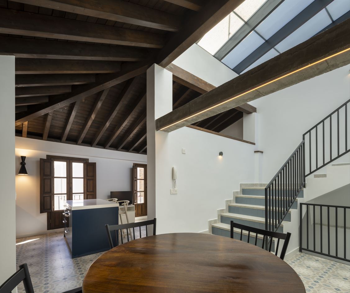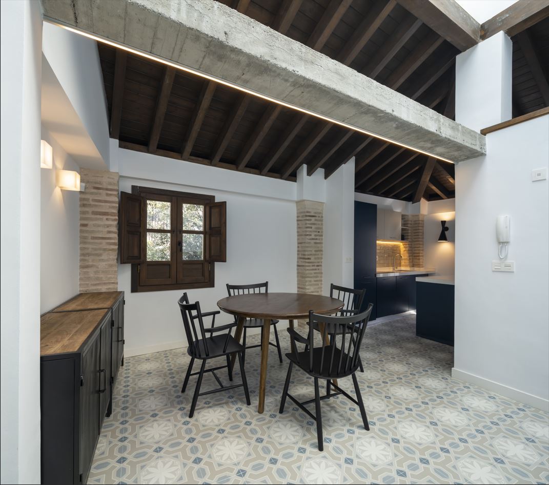 Edificio plurifamiliar con tres viviendas, en el que se pudieron recuperar las fachadas originales, trasdosadas en las últimas décadas con fabrica de ladrillo moderno.