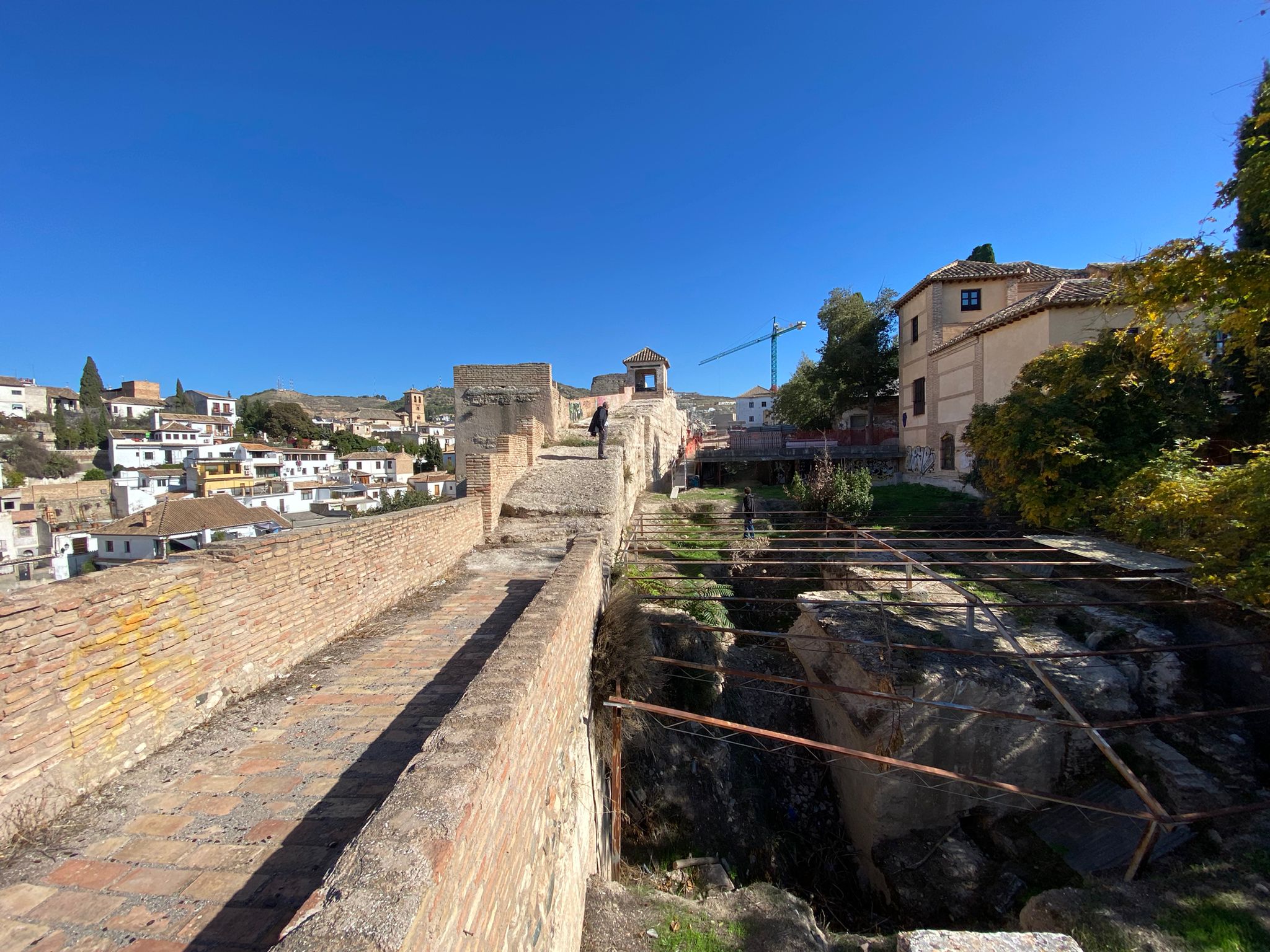 La complejidad patrimonial que presenta el lugar donde se proyecta la intervención lo convierten en uno de los lugares más singulares y destacados de la ciudad. Se trata de un espacio con una fuerte identidad histórica que se halla actualmente desvinculado del barrio por encontrarse clausurado y sin uso desde hace varias décadas. Esta situación se ve, además, agravada por la falta de un conocimiento exhaustivo sobre lugar debido a la existencia de importantes rellenos que impiden la lectura y comprensión completa de las estructuras arqueológicas que aquí se localizan. A pesar de ello, han sido numerosas las excavaciones y estudios realizados en el ámbito de la muralla, lo que permite comprender la dimensión patrimonial del lugar en el que se unen dos lienzos de muralla (muralla exterior e interior), se comunican dos puertas principales de acceso (Arco de las Pesas y Puerta Monaita) y una serie de elementos patrimoniales que definen la ocupación de este lugar a lo largo del tiempo, como son el paso de la acequia de Aynadamar junto al acueducto o Arco de las Monjas, el Palacio de Daralhorra, la traza del Alcázar del Rey Badis e incluso estructuras anteriores como la muralla visigoda y diversos restos romanos localizados junto a la muralla en la década de los ochenta y más recientemente en su entorno próximo.